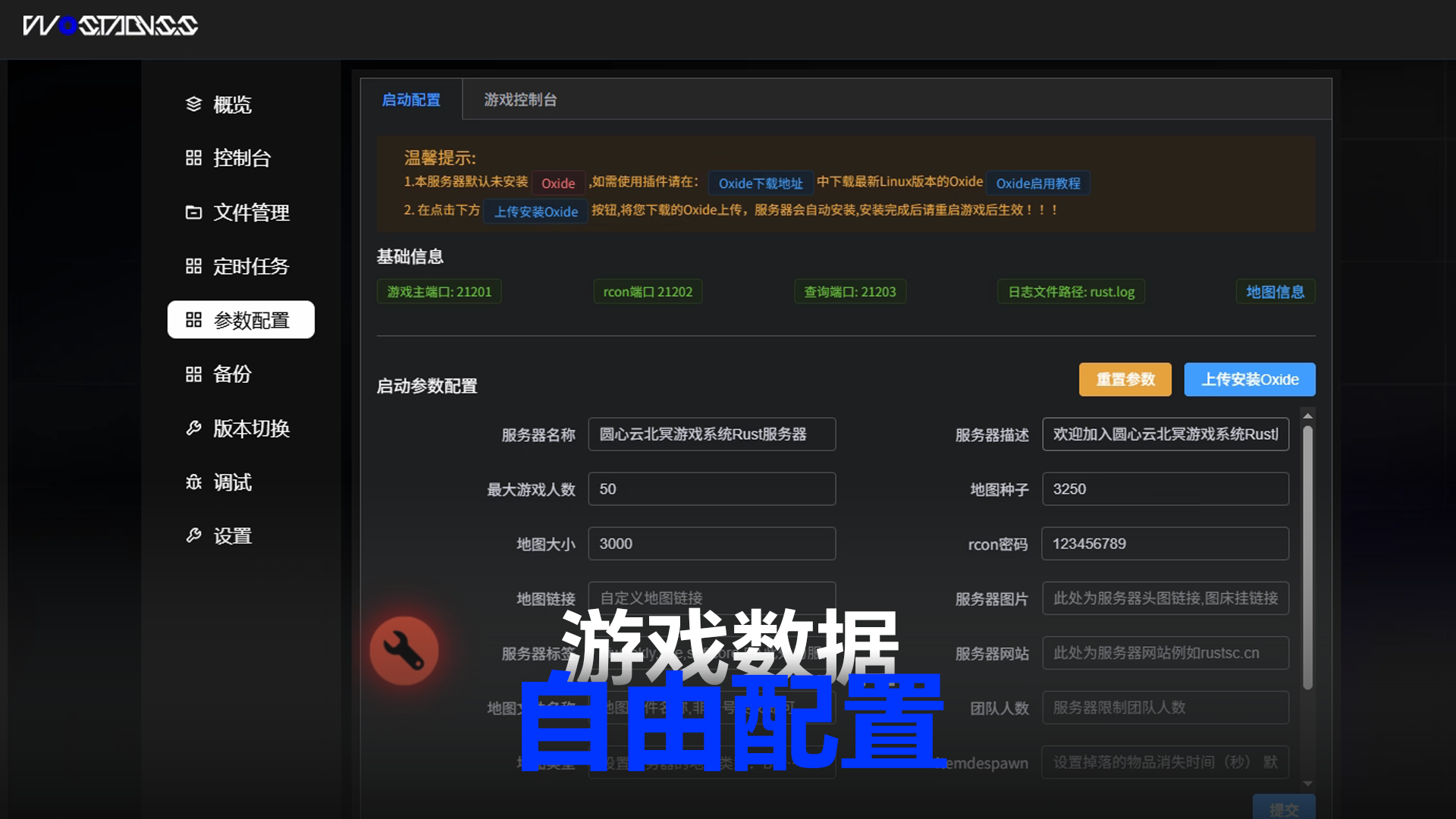该北溟服务器专为《Rust腐烛》进行了深度优化,每台服务器独享配置,开箱即用,简单操作。购买后只需等待安装和启动完成,即可直接进入游戏,无需额外操作。同时支持易操作的内置文件管理,可视化设置,轻松修改服务器名称、地图、标签等内容;可在社区服与模组服之间自由切换,圆心官方提供完整的技术与生态支持搭配,能提供丰富插件库和插件支持,满足各类玩法需求。助您灵活选用多种开服方案。该服务器已支持自动备份、自动重启功能,并支持游戏版本自由切换。